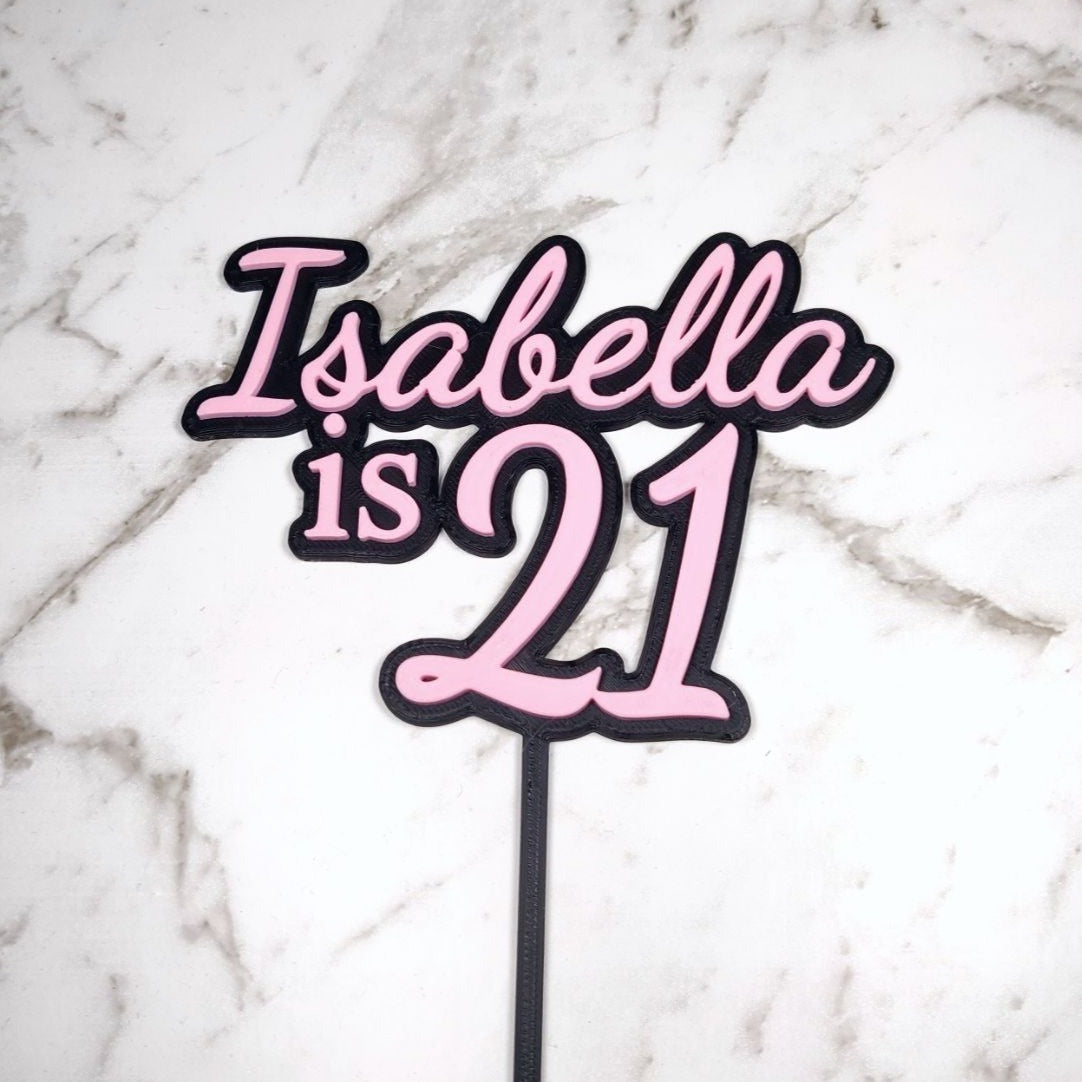 This two layer customisable name and age birthday topper is perfect for a special celebration.